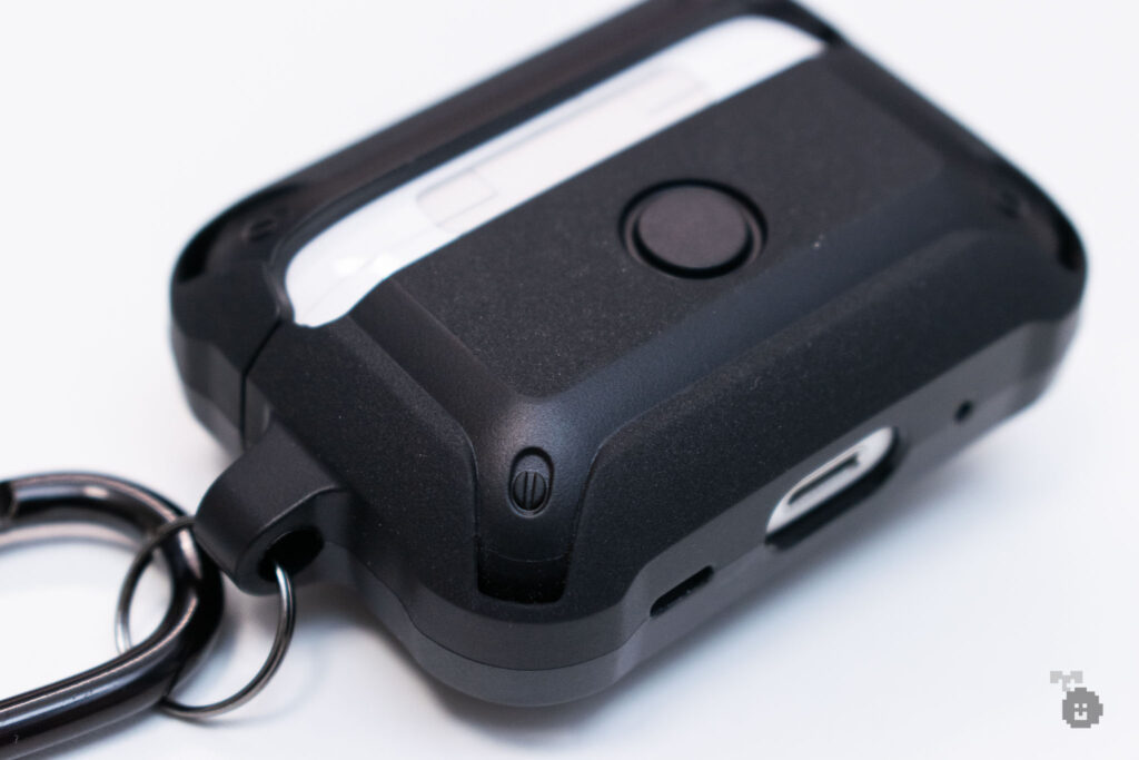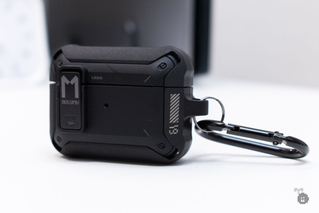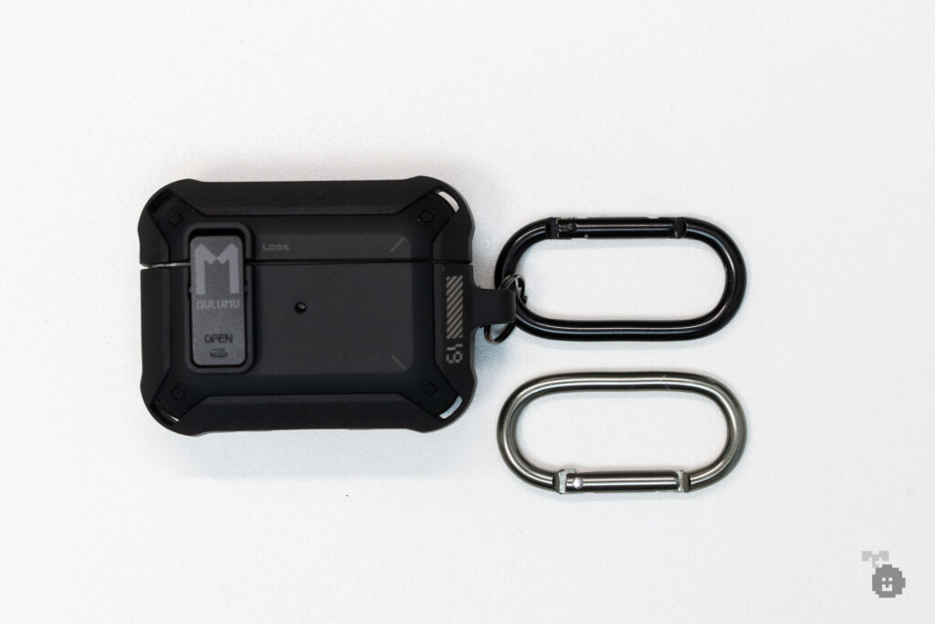 リュックやベルトにカラビナで吊り下げていても中身が飛び出す心配がほぼなく、ポケットにAirPodsを入れたくない人には相性が良いケースです。