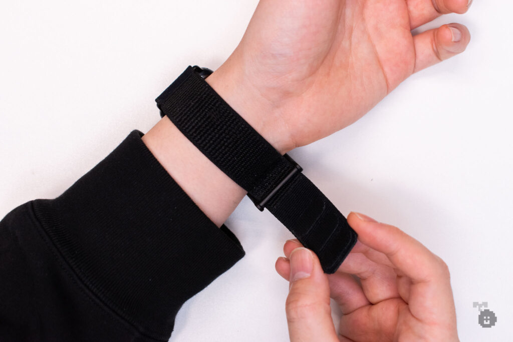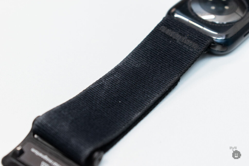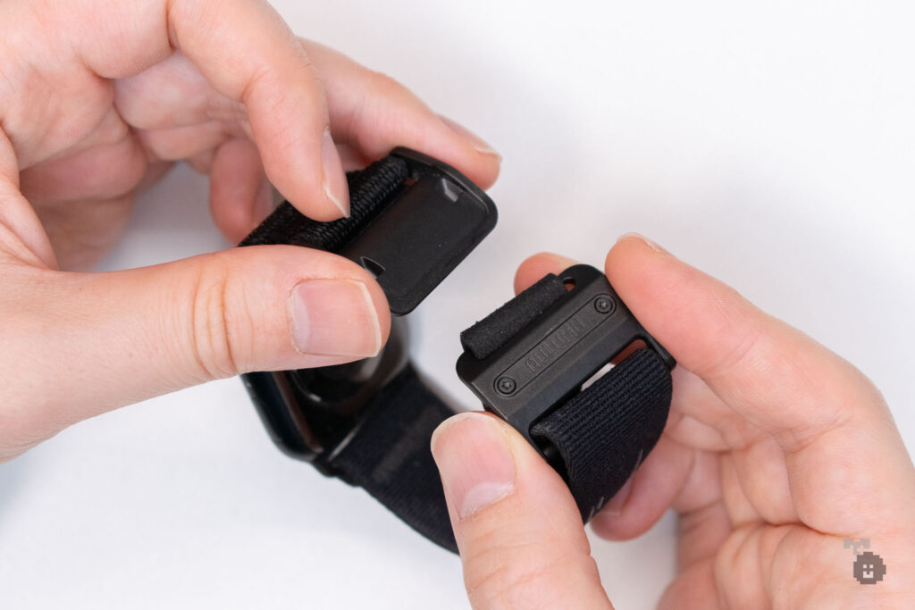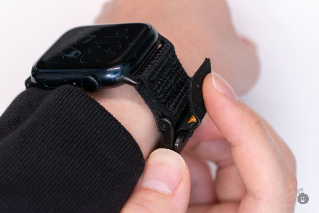 2段目のロック機構は、片方のマグバックルに付いているプチ面ファスナーを留めるだけ。これによってガッチリとAppleWatchが固定できます。