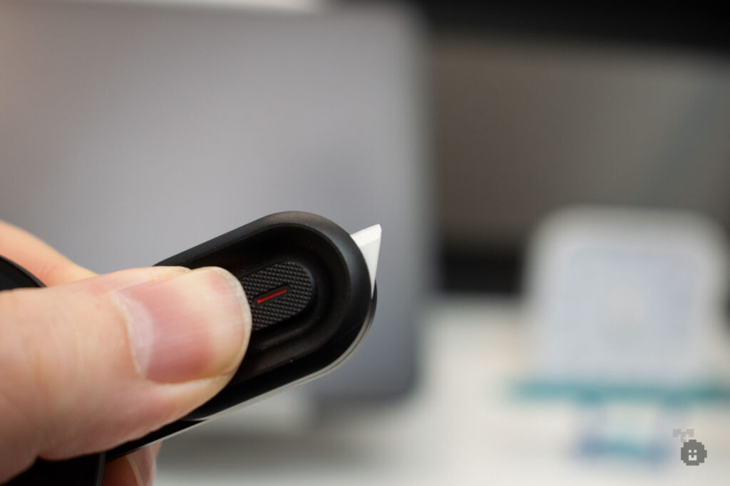 また、スライド式の隠しカッターもあります。ダンボールや封筒の開封など以外実用的で、結構使用してます。刃の取り出しが重めで誤作動しにくいのも良い所。