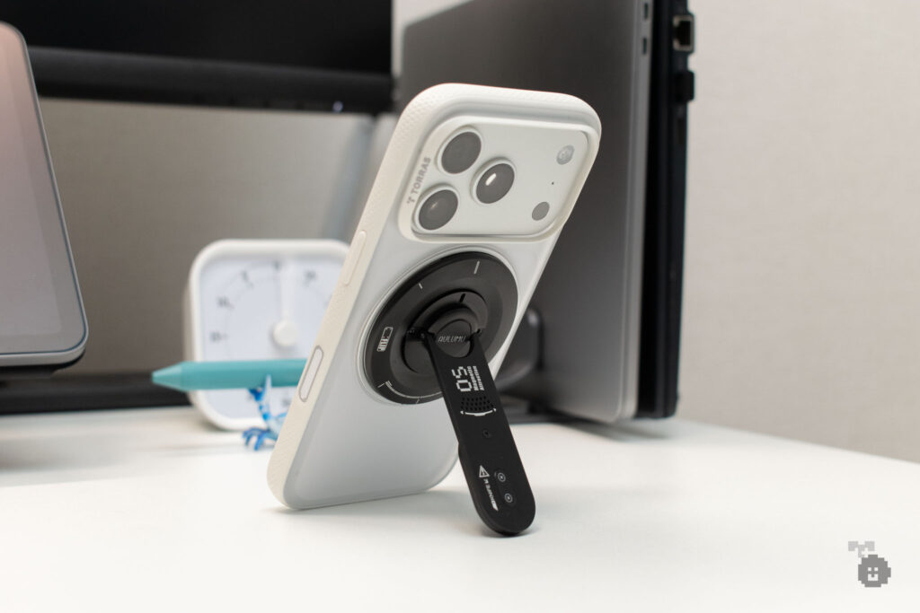 まずは G05(MagSafeスタンド) 。360度回転機構と隠しカッターを搭載した、メカ感の強いMagSafeスタンドです。
