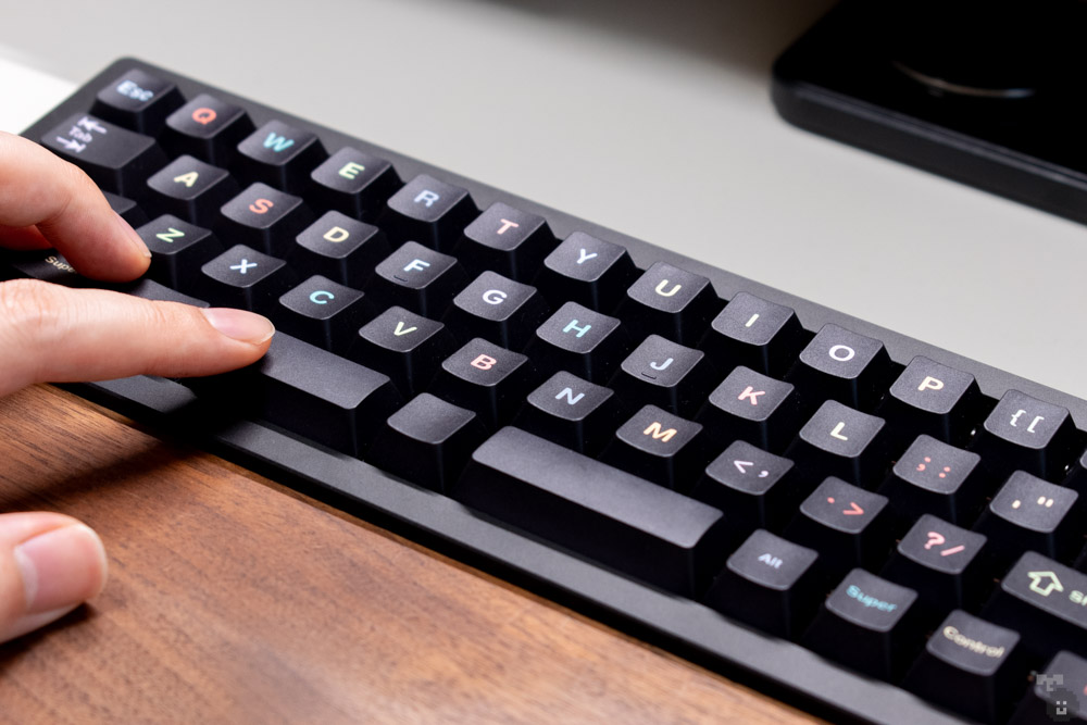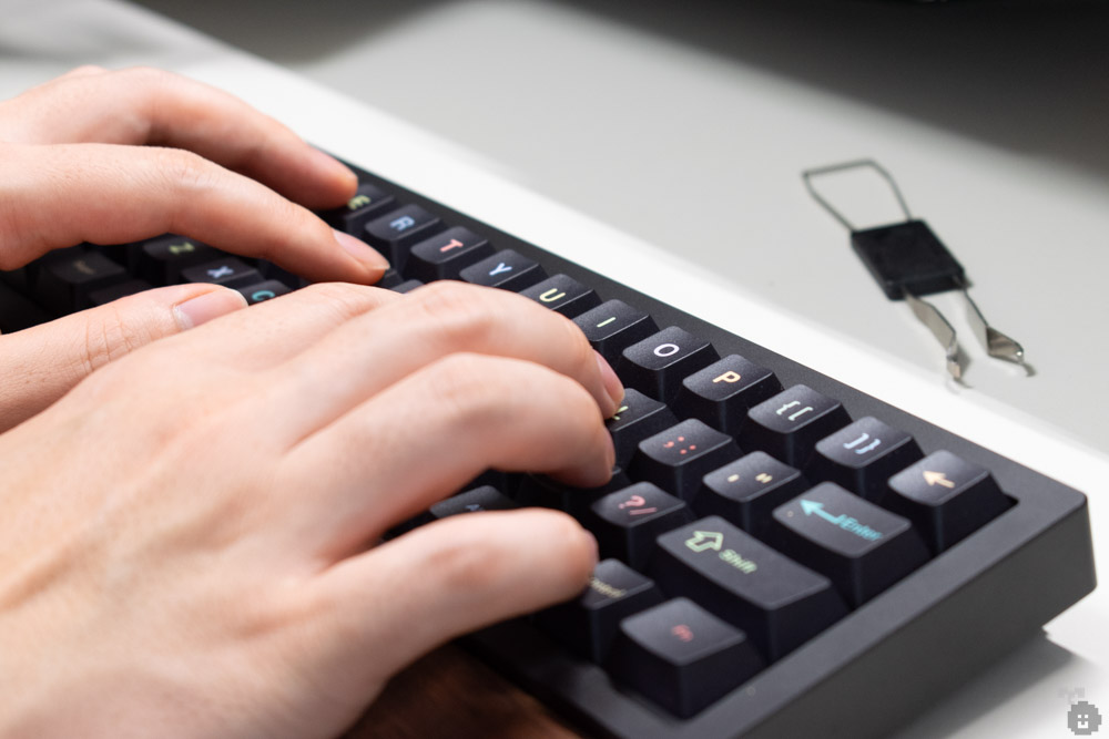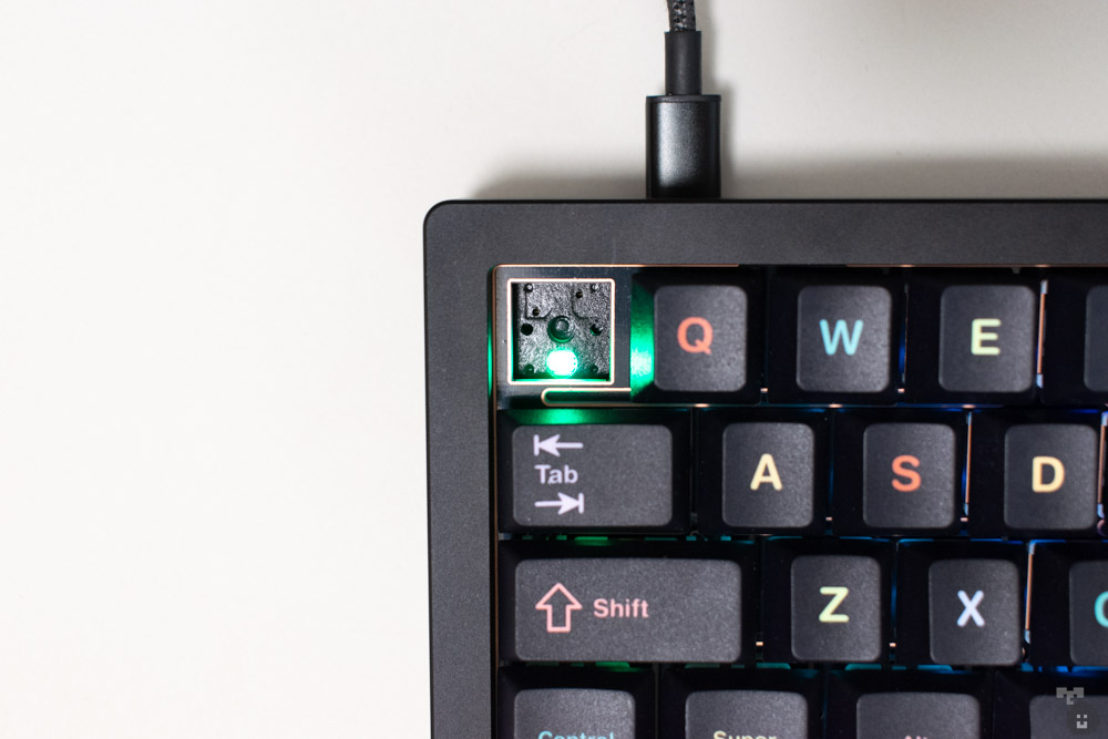 更に形状(プロファイル)のことも考えるとしっくりくるキーキャップを探すのが大変で、筆者もピンとくるものが見つけられておらず、デフォルトのキーキャップを愛用しています。せっかくのLEDを活かしたいと思いつつ…。