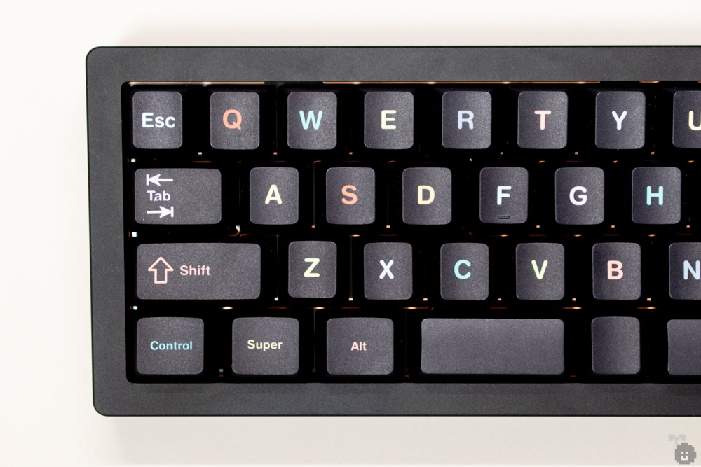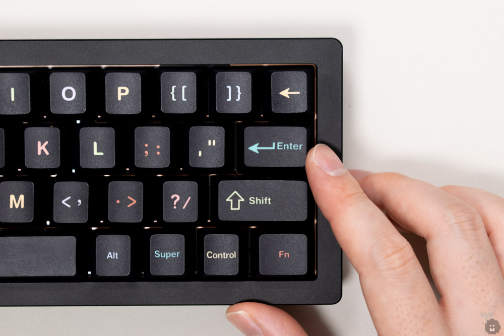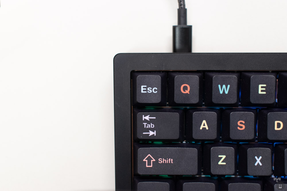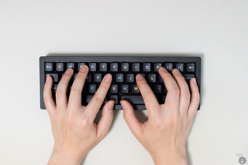 レイアウトですが、40%でクセは強め。フルサイズや60%に比べて数字列・ファンクション列・矢印キーが省略されており、Fnやレイヤー操作は必須になります。