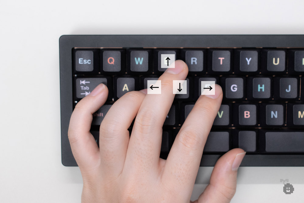 これならホームポジションから手を動かさず矢印キーを押せますし、右手でマウスを触りながら左手は矢印キー、という芸当も可能。かなり便利です。