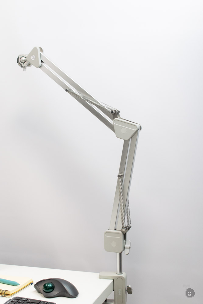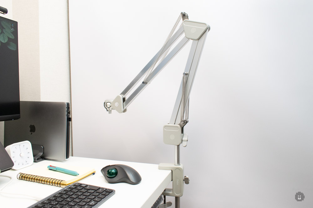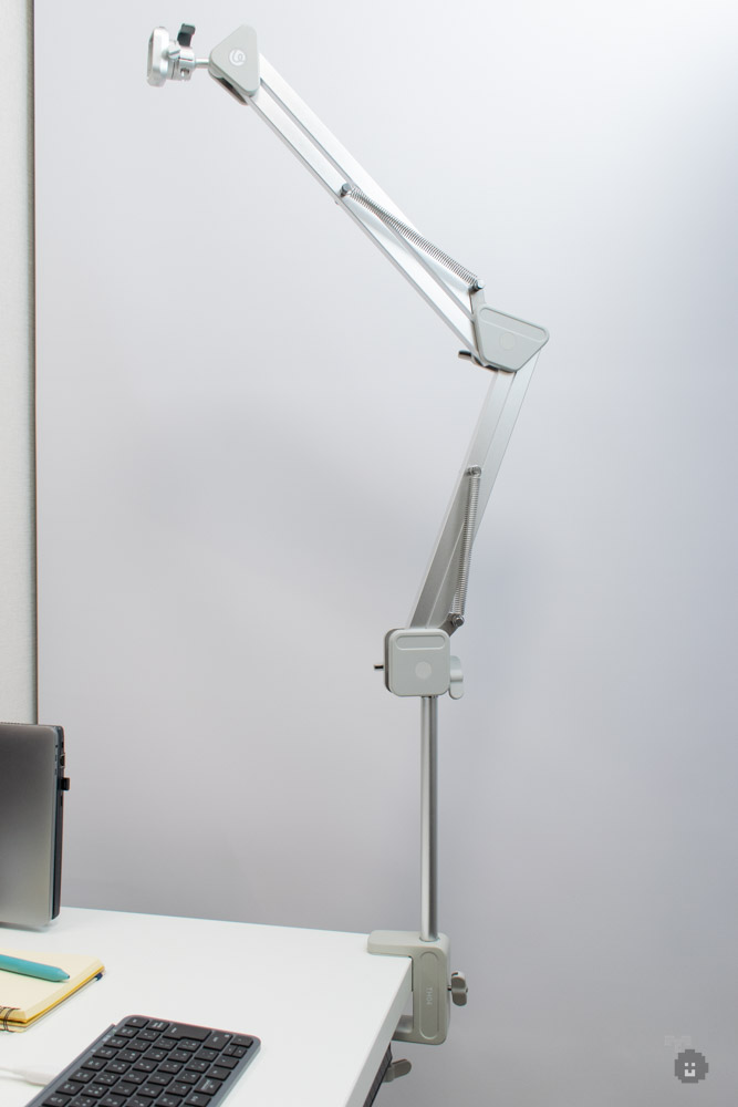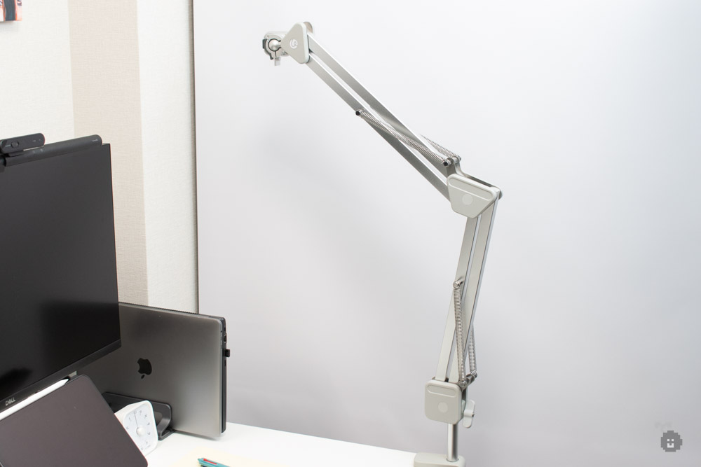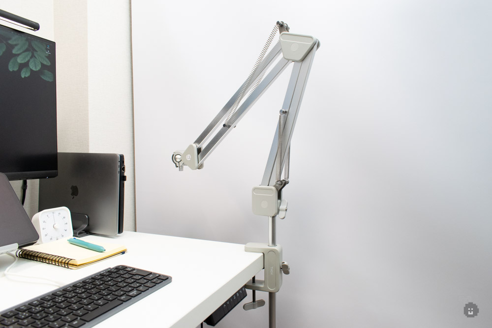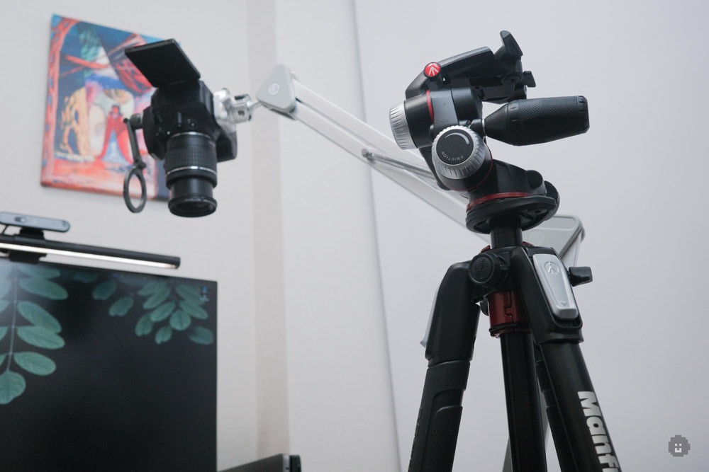 ということで動画撮影は厳しめではありますが、例えばアーム自体を他に逃す(サブデスクや棚に固定する)等で、どうにか運用はできるかと。