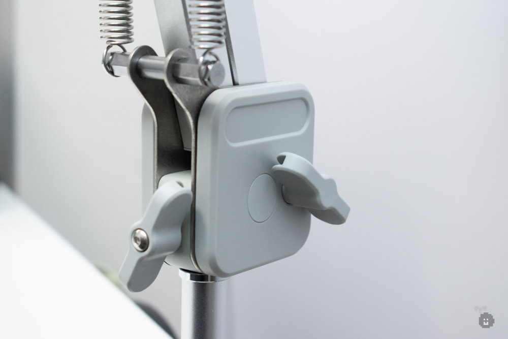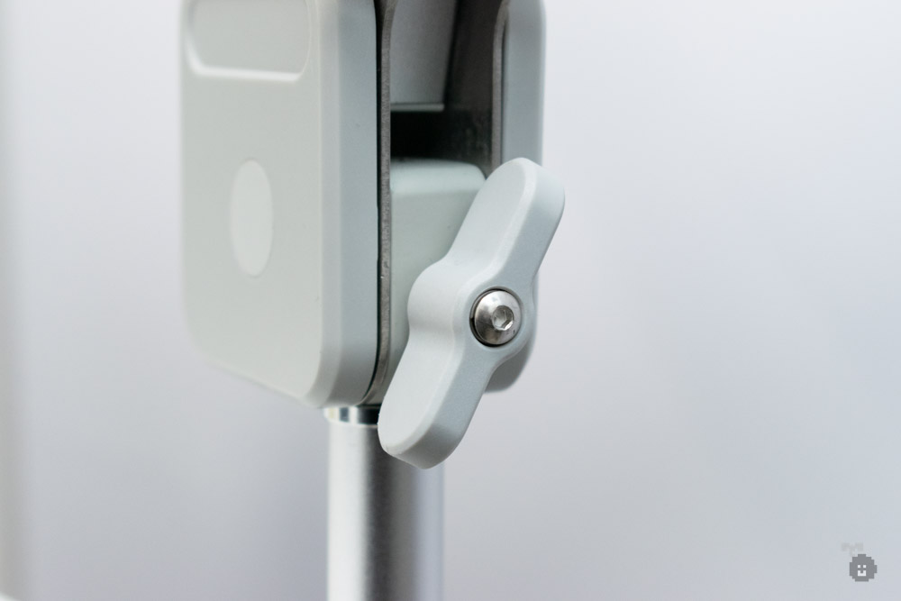 また、アーム調整機構の持ち手はプラスチック製。回しやすい一方で、締めすぎると破損の可能性があります。